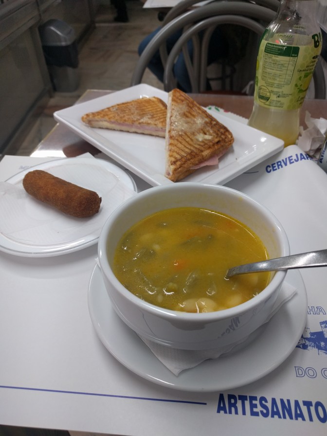 W okolicy twierdzy zjadłem prosty lunch złożony z zupy jarzynowej i tostów. W Portugalii sporo jest kafejek oferujących takie proste i niedrogie potrawy i do takich zachodziłem w ciągu dnia.