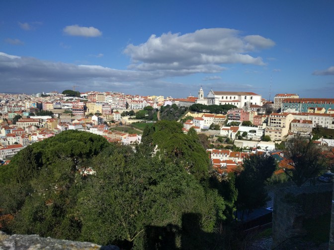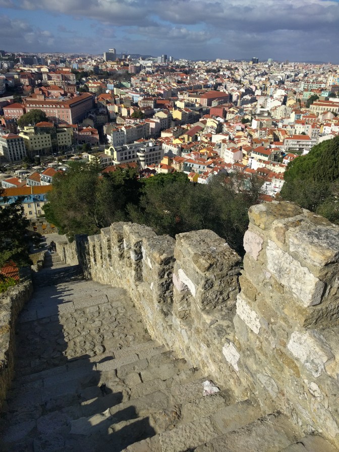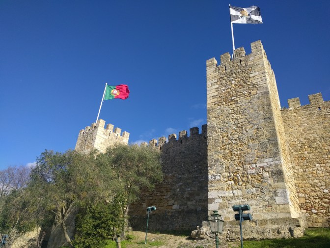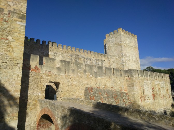 Wybrałem się też do średnowiecznej twierdzy, zamku św. Jerzego. Twierdza położona jest na wzgórzu dającym walory obronne, ale również piękne widoki. Znajduje się tu też Camera Obscura, na której można podziwiać panoramę Lizbony.