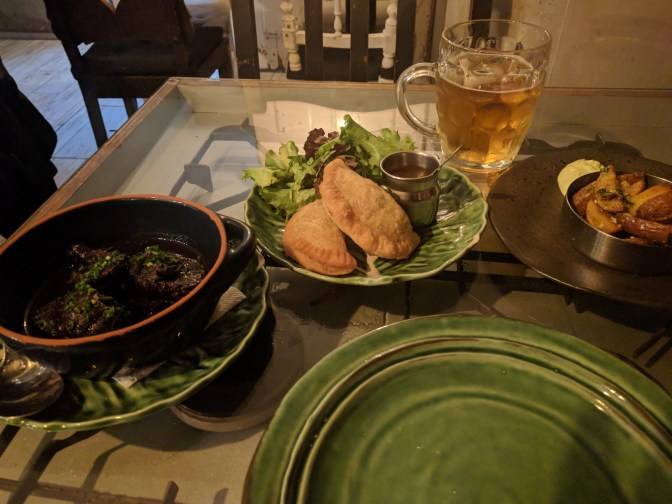 Co innego wieczorem. Policzki wołowe w sosie winnym, jakieś piwo, można zjeść tanio i dobrze, ale też drogo i dobrze. Do tego pierożki. Choć przyznam, że wieczorem to się tak średnio najadłem. Chyba wolę pierwszą opcję.